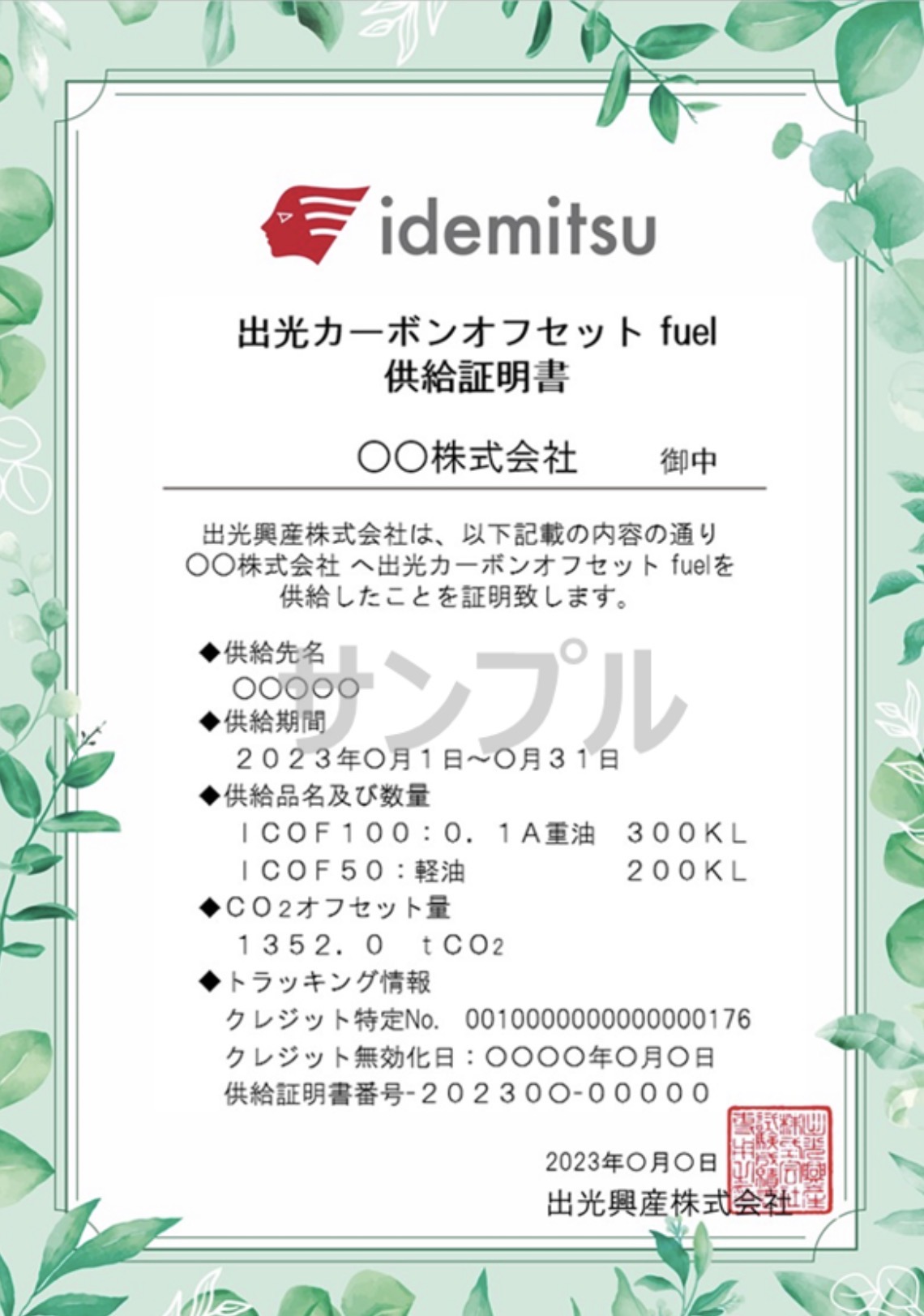 弊社では2026年4月より、持続可能な社会の実現とカーボンニュートラル達成に向けた新たな取り組みとして、全ての社用車の燃料に、出光興産が提供する**「出光カーボンオフセット燃料(iCOF)」**を導入いたしました。