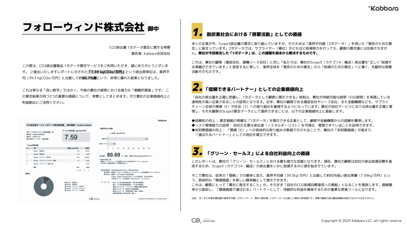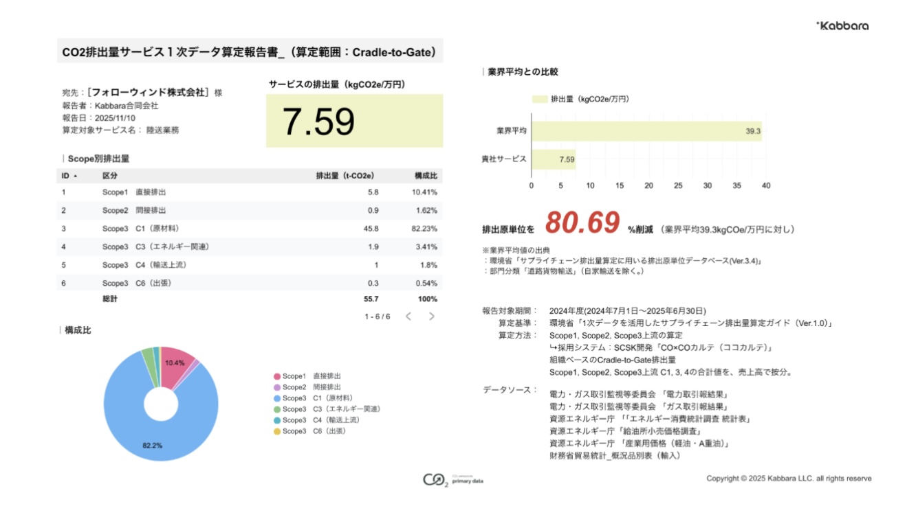 フォローウィンド株式会社(本社:秋田市泉北4-2-10、代表取締役:髙田圭子)は、この度、売上の90%を占める主力部門である陸送部門(グローバルシェア北東北ブロック)における製品一次データ(CO2排出量)の算定結果を公表いたしました。
